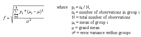 k: 群の数、n: 各群のサンプルサイズ、f: 効果量。